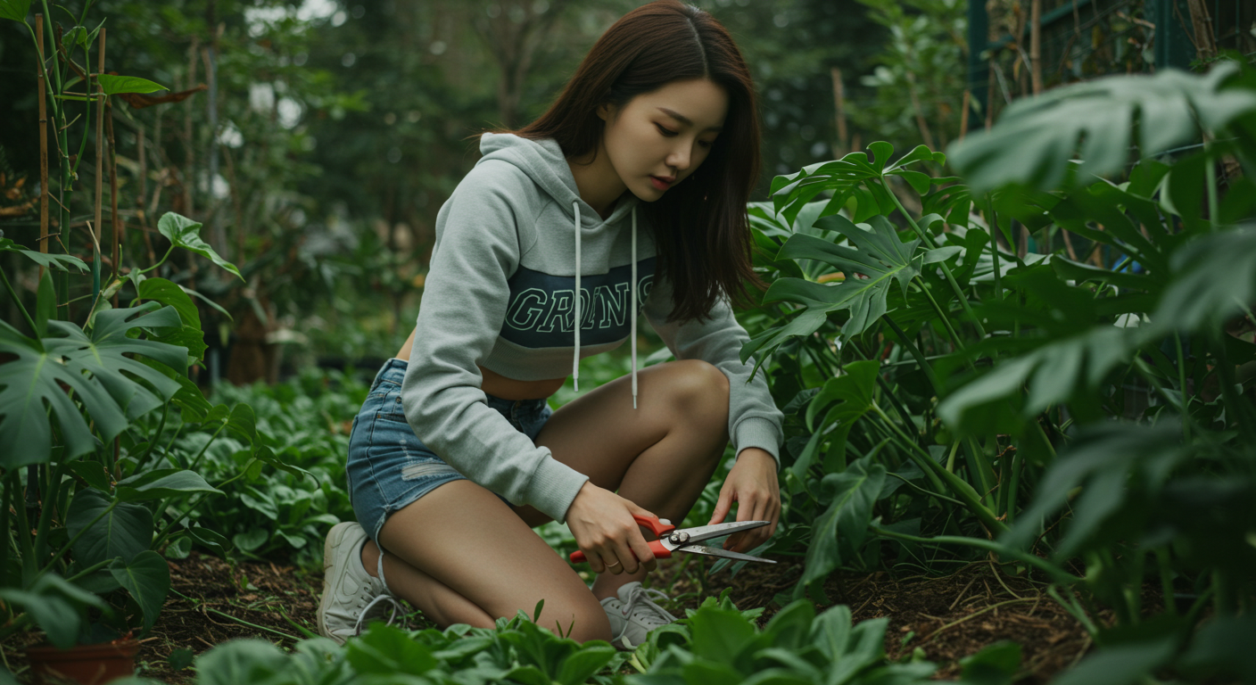 가지치기를 할 때는 식물 전체의 균형을 생각하는 게 중요해요. 줄기가 한쪽으로 치우치거나, 특정 잎만 너무 크게 자란다면 그 부분을 과감하게 잘라주세요. 이렇게 하면 다른 부분들이 고르게 자라면서 전체적인 수형이 더욱 예뻐집니다.