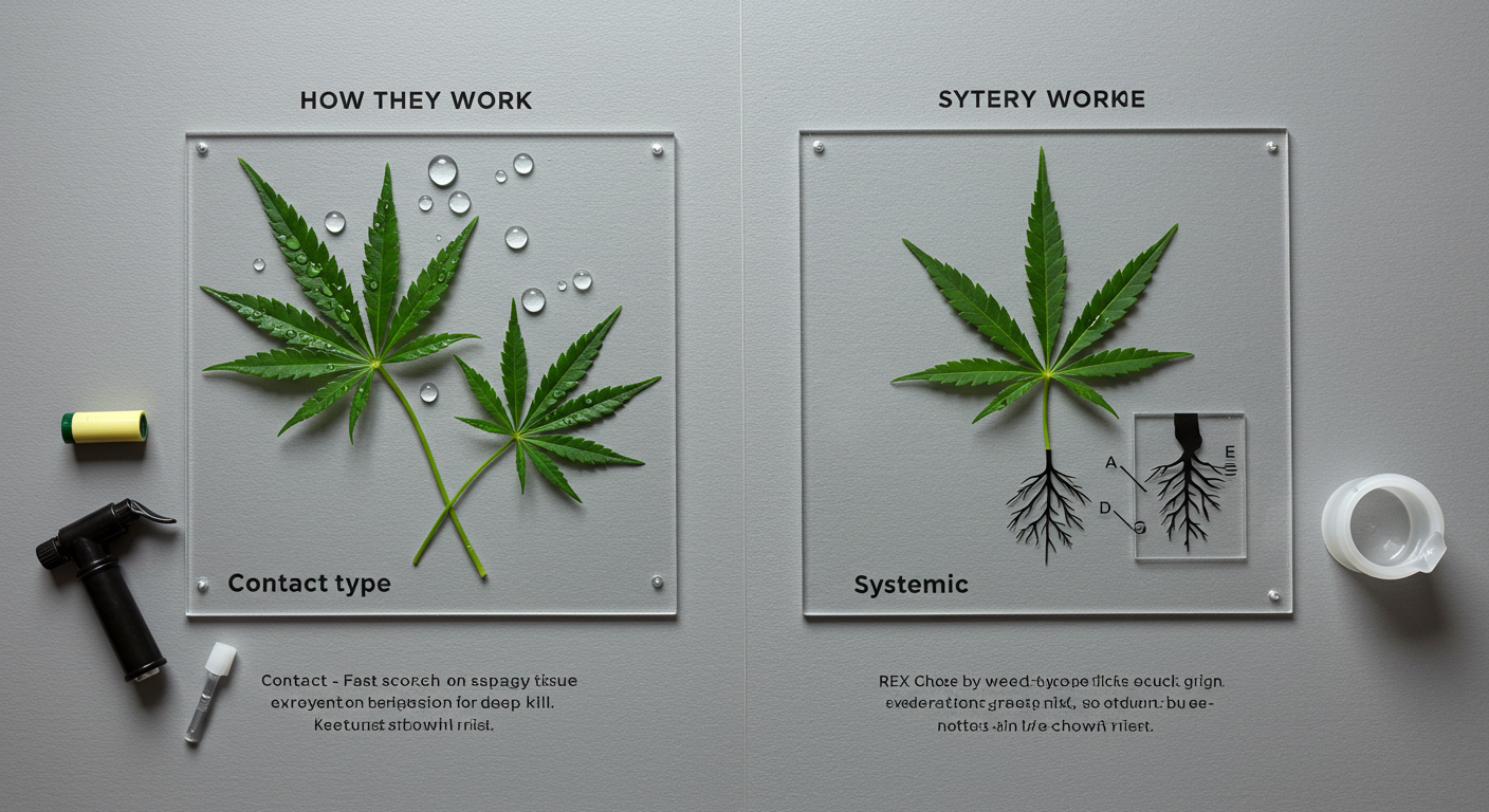 비선택성 제초제는 또 작용 방식에 따라 '접촉형'과 '이행형'으로 나뉩니다. 접촉형은 약액이 묻은 잎이나 줄기 부분만 빠르게 말라 죽게 만드는 방식이에요. 효과가 눈에 빨리 보인다는 장점이 있지만, 식물의 뿌리까지 완벽하게 제거하지는 못할 수 있어요. 그래서 주로 일년생 잡초 제거에 효과적이죠.