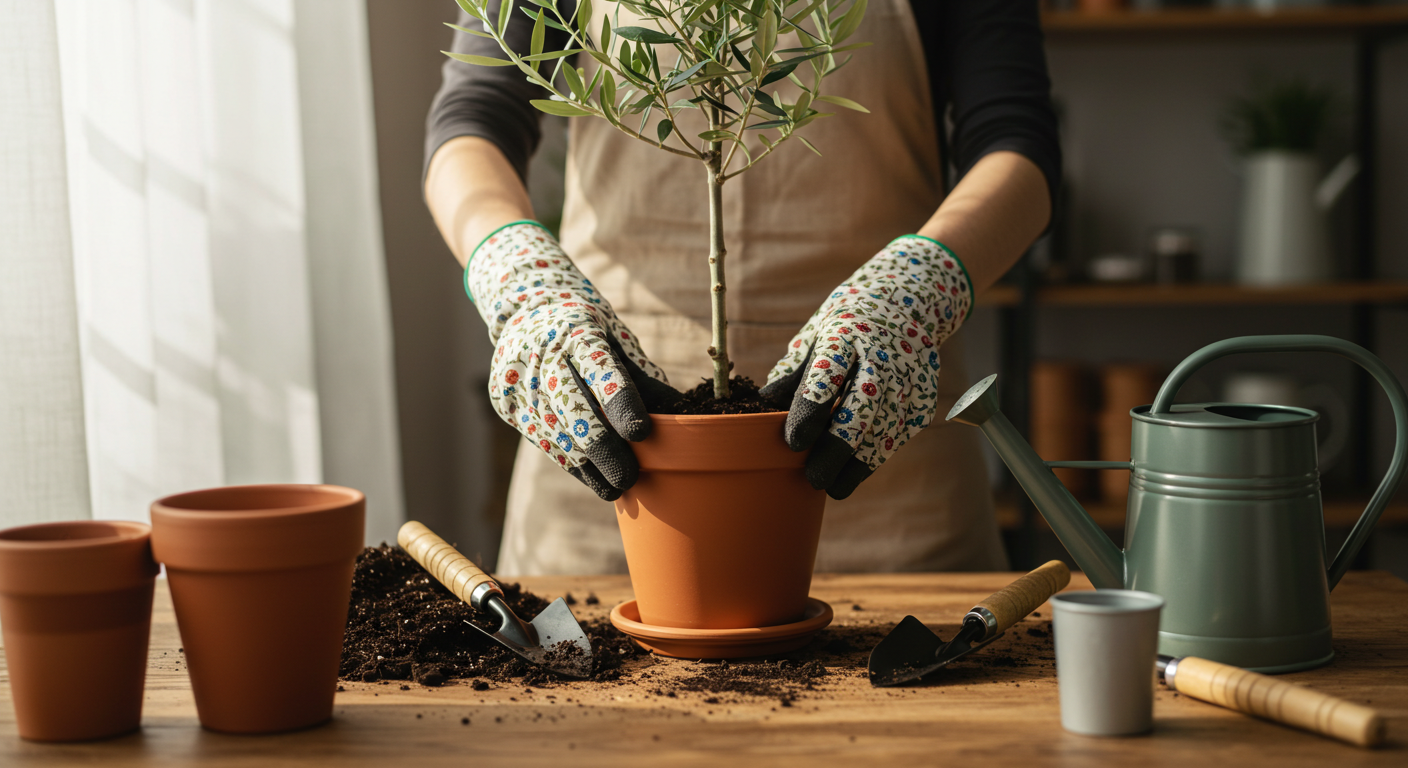 올리브 나무가 어느 정도 성장을 하면 더 넓은 집으로 이사 시켜주는 '분갈이'가 필요해요. 보통 1~2년에 한 번, 기존 화분에 비해 1.2~1.5배 정도 큰 화분으로 옮겨주는 것이 좋아요. 분갈이 시기는 식물이 활발하게 성장하는 봄이 가장 적합하답니다. 분갈이를 할 때는 배수가 정말 중요하기 때문에, 흙 배합 시 펄라이트나 마사토를 20~30% 정도 섞어 물 빠짐이 좋도록 만들어주는 것이 핵심이에요. 기존 흙을 너무 많이 털어내면 뿌리가 스트레스를 받을 수 있으니, 뿌리 주변의 흙은 가볍게만 정리하고 옮겨 심어주세요.