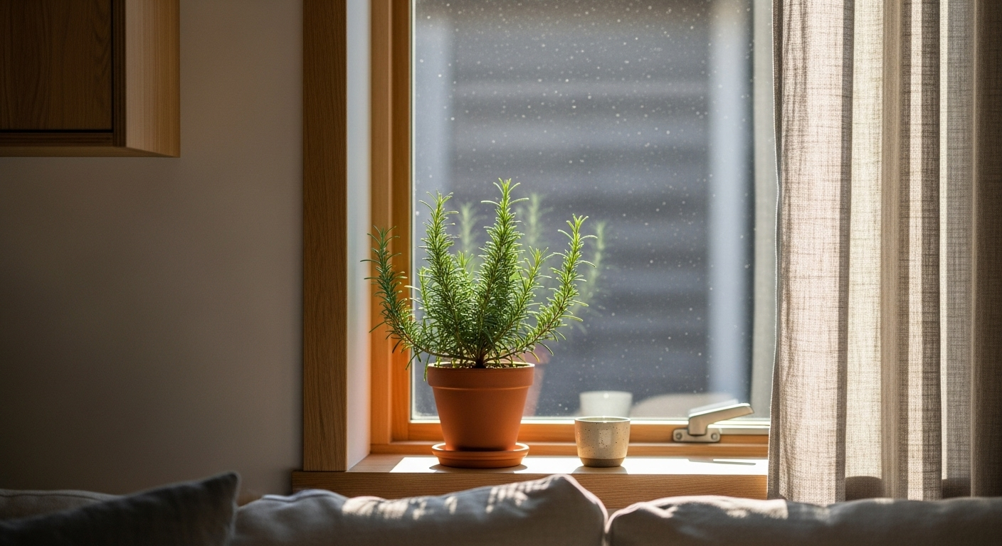 로즈마리는 '햇빛 보약'이라는 말이 있을 정도로 햇빛을 좋아해요. 하루 최소 6시간 이상, 가능한 한 가장 밝고 해가 잘 드는 곳에 두세요. 햇빛을 많이 받을수록 잎이 단단해지고 웃자라지 않으며, 흙도 빨리 말라 과습을 예방할 수 있어요.