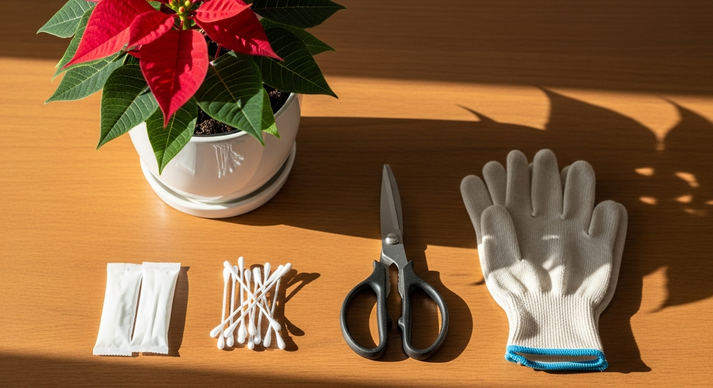 전문가 팁: 포인세티아의 흰 유액(라텍스)은 '포르볼 에스테르'라는 성분을 포함하고 있어, 일부 사람들에게 피부염을 유발할 수 있습니다. 눈에 들어가면 일시적인 시력 저하를 일으킬 수도 있으니, 가지치기 후에는 손을 깨끗이 씻고, 가위도 바로 닦아주는 것이 좋습니다. 반려동물이나 어린아이가 섭취하지 않도록 주의가 필요합니다.