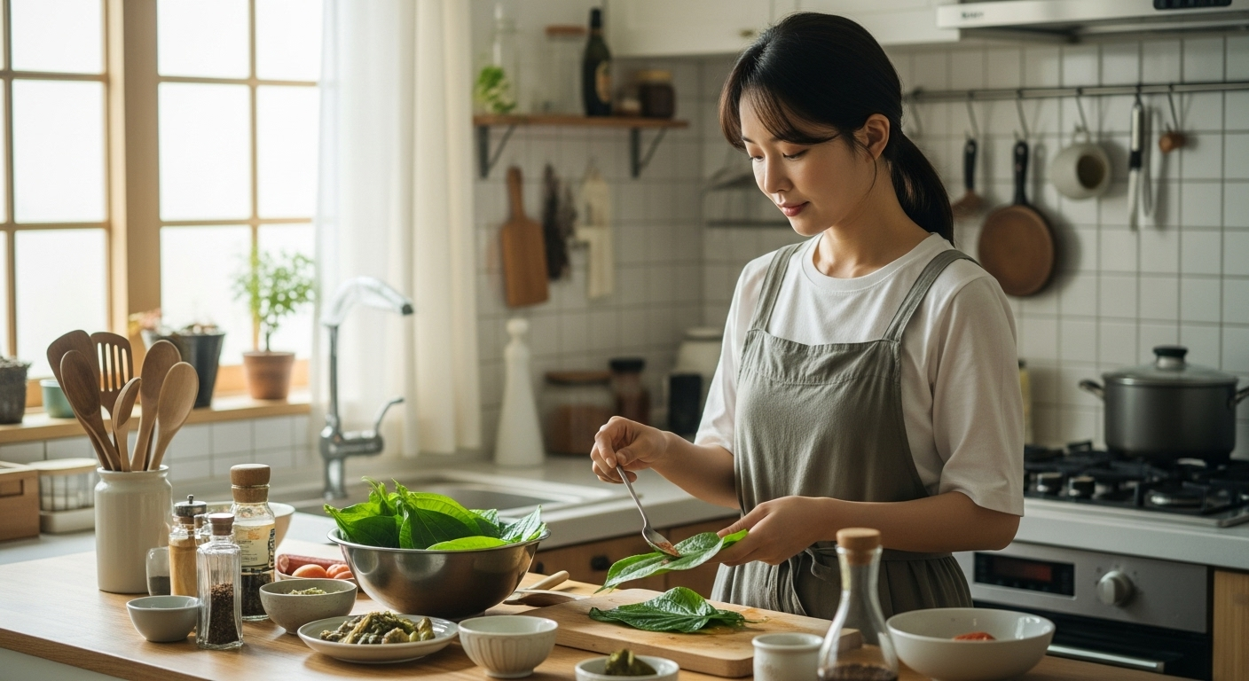 앞서 말씀드렸듯이 하늘마 잎에는 쓴맛과 아린 맛을 내는 수산(옥살산) 성분이 있어요. 이 맛을 제거하는 것이 하늘마 잎 요리의 성패를 가르는 핵심 포인트랍니다! 초보자도 쉽게 따라 할 수 있는 하늘마 잎 먹는법의 핵심, 바로 '손질'입니다.