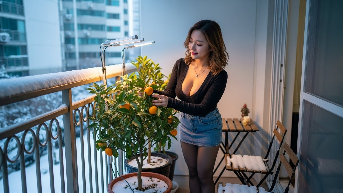 제주도가 고향인 귤나무는 영하의 기온에는 취약합니다. 베란다 온도가 5도 이하로 내려가지 않도록 관리해야 하며, 한파가 올 때는 실내 창가 쪽으로 옮기거나 보온 조치를 해야 합니다.