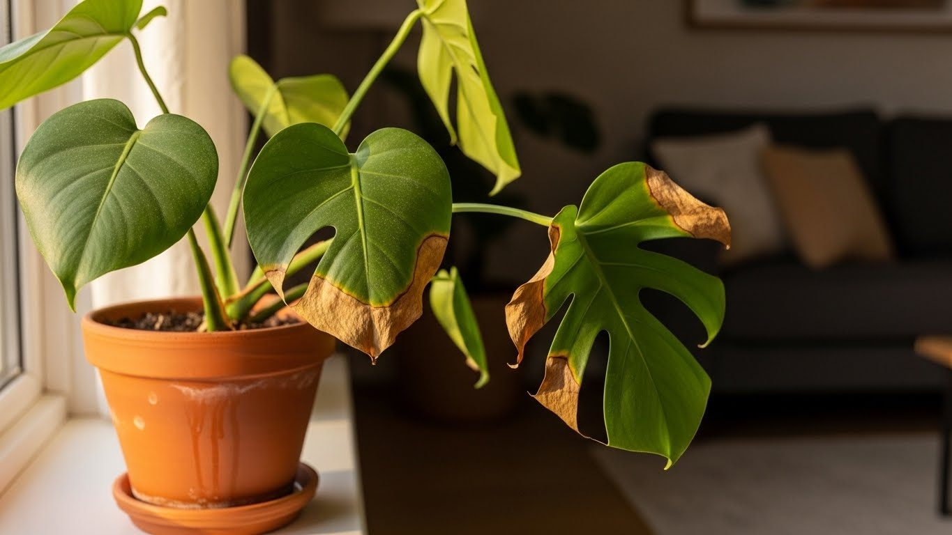 보통 노란색은 과습이나 영양 불균형일 가능성이 높고, 갈색으로 바삭하게 마르는 것은 물 부족이나 공중 습도 부족인 경우가 많습니다. 물론 병충해의 경우 두 가지 증상이 혼재될 수 있습니다.