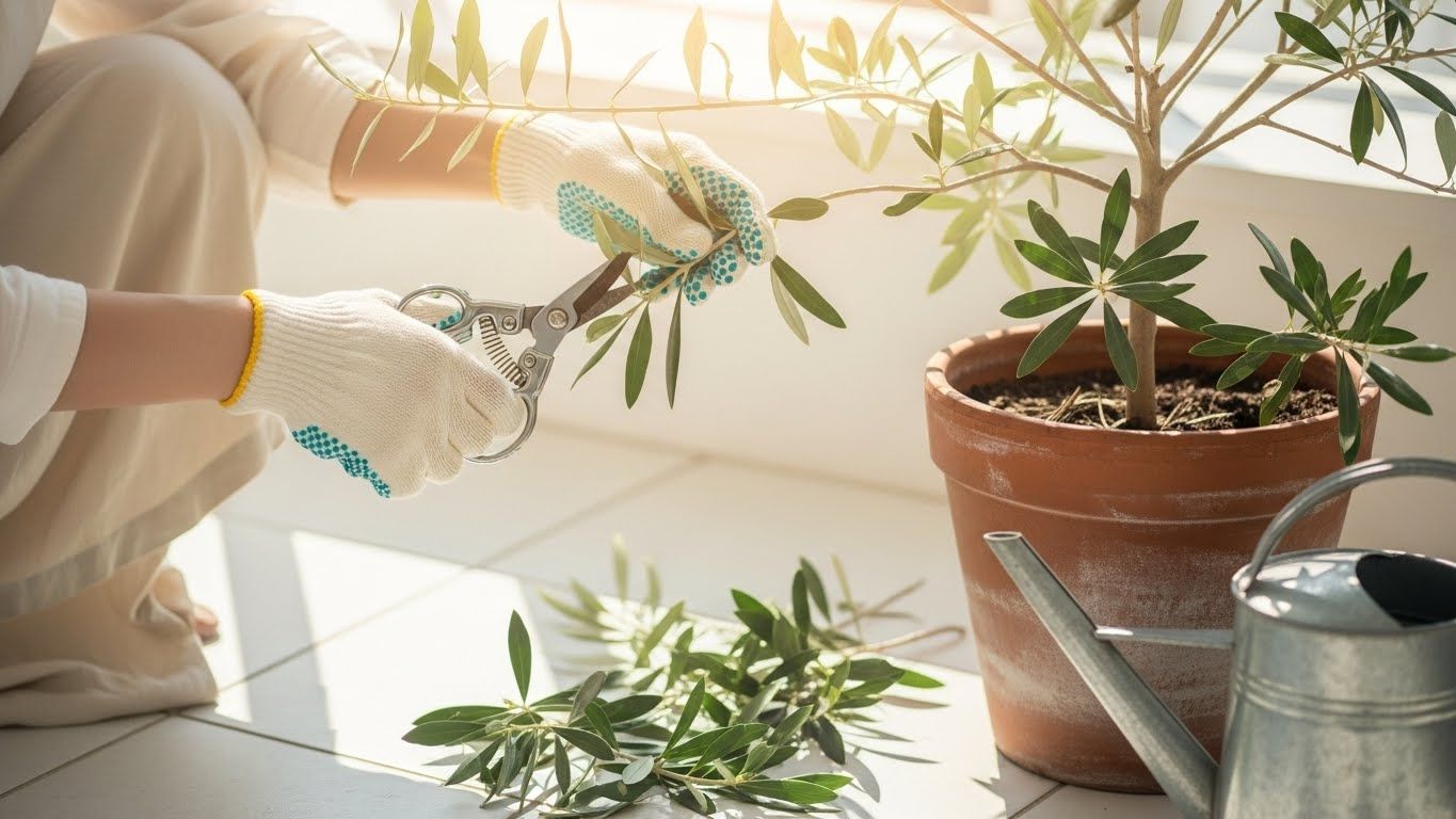또 다른 실수는 꽃눈을 생각하지 않고 자르는 경우예요. 올리브나무는 보통 전년도에 자란 가지에서 꽃이 피고 열매를 맺는데, 가을이나 겨울에 가지 끝을 몽땅 잘라버리면 이듬해 봄에 꽃을 볼 수 없게 된답니다. 열매를 보는 것이 목표라면 꽃눈 분화 시기를 피해서 전정하거나, 열매 맺을 가지(결과지)를 남겨두는 센스가 필요해요.