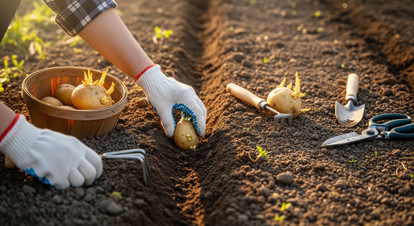 감자 심는 깊이는 보통 10~15cm 정도가 적당해요. 너무 얕게 심으면 감자가 자라면서 밖으로 노출되어 초록색으로 변해버리거든요(솔라닌 생성). 반대로 너무 깊게 심으면 싹이 올라오는 데 한세월 걸리더라고요.