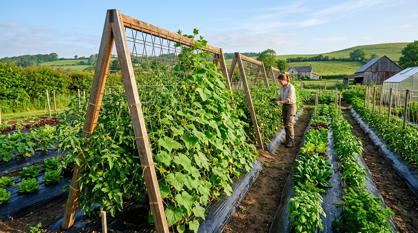 오이 지지대와 오이망 설치로 수확량 2배 늘리기