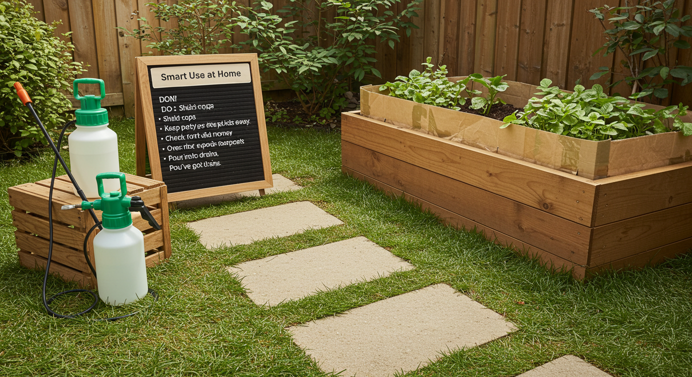 가정용으로 사용할 때는 반드시 농약 판매처에서 용도에 맞는 제품을 추천받아 소량으로 구매하고, 제품 설명서에 나온 가정용 희석 배수를 철저히 지켜야 합니다. 특히 텃밭에 사용할 경우, 내가 키우는 채소나 꽃에 약액이 절대 튀지 않도록 바람이 없는 날, 분무기 앞에 가림판 등을 대고 조심스럽게 살포해야 합니다. 아이들이나 반려동물이 있는 가정이라면 살포 후 최소 하루 이상은 해당 구역에 접근하지 못하도록 철저히 관리해야 합니다.