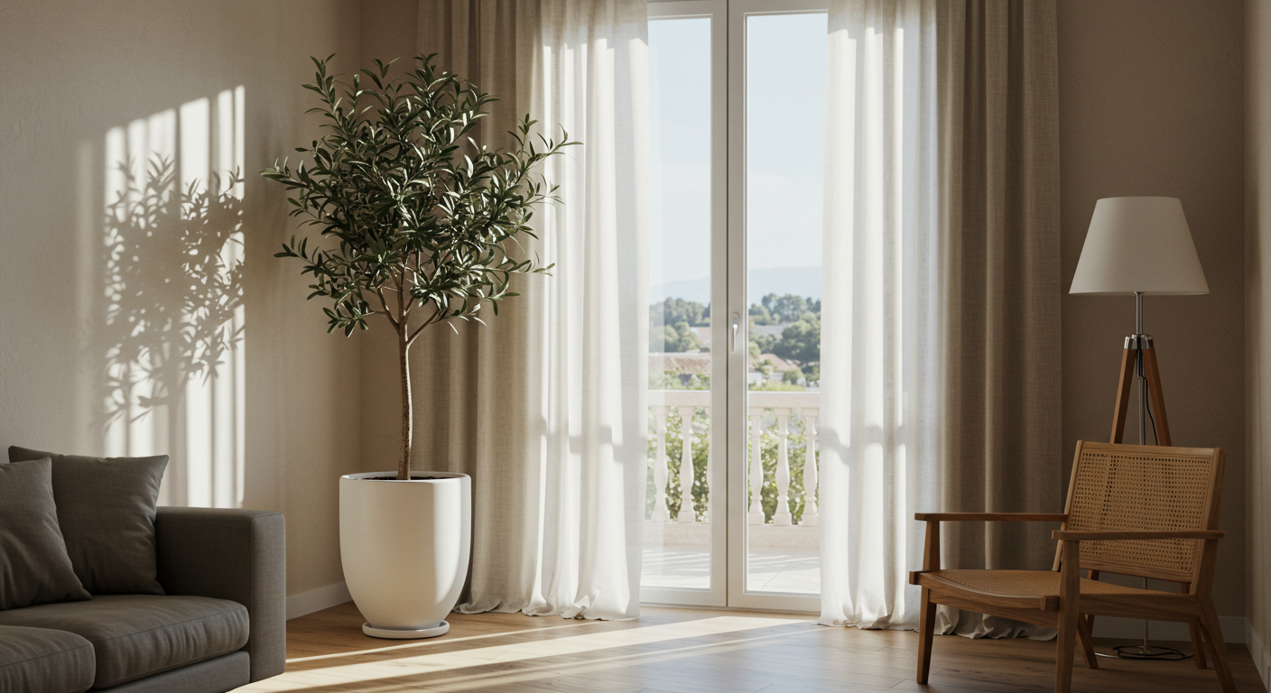 올리브 나무 한 그루가 주는 인테리어 효과는 정말 상상 이상이에요. 햇살이 잘 드는 창가에 올리브 나무 화분을 놓아보세요. 바람에 살랑이는 은빛 잎사귀를 보고 있으면 마치 그리스의 어느 작은 마을에 와 있는 듯한 착각에 빠질 거예요. 특히 하얀 커튼이나 라탄 소재의 가구와 함께 매치하면 그 매력이 배가 된답니다.