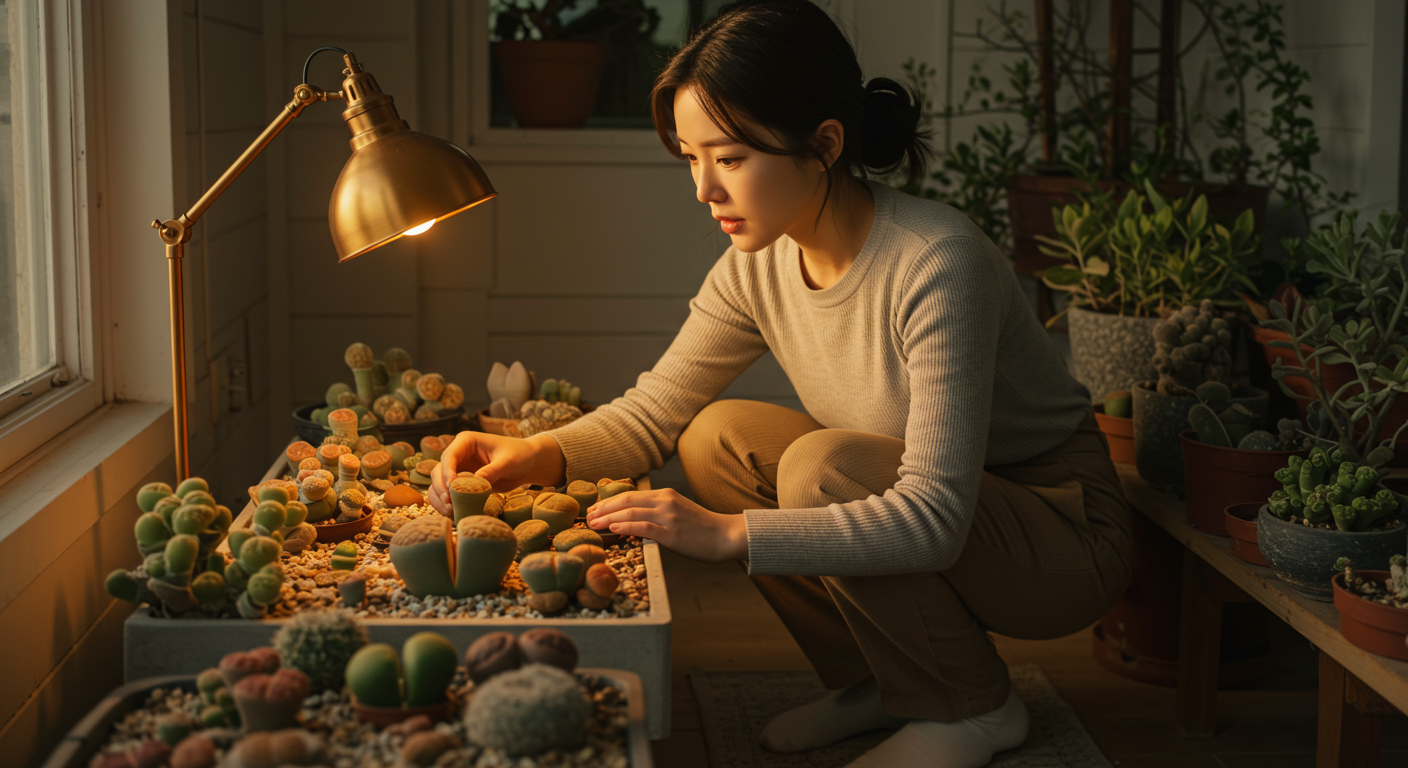 이 아이들은 조금 까다로운 다른 다육이들보다 비교적 물과 햇빛에 대한 요구가 적어서 초심자에게 안성맞춤이랍니다. 잎이 통통한 '미인류'는 물을 듬뿍 저장하고 있어 건조에 강하고, '염좌'처럼 줄기형 다육이는 가지치기를 통해 예쁜 수형을 만들 수 있죠. 또, '리톱스'나 '코노피튬'처럼 독특한 모양의 다육이는 탈피하는 과정이 신기해서 키우는 재미가 쏠쏠해요.